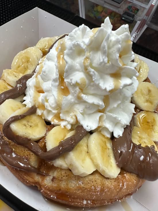 Bananas, Nutella, toasted coconut, whip cream, & maple syrup!